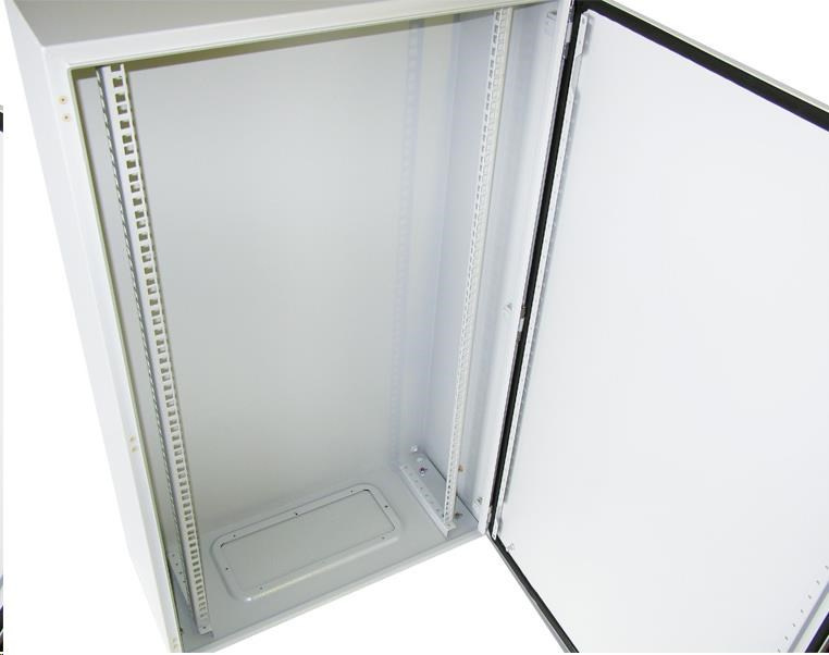 Venkovní nástěnný rozvaděč vyrobený z válcované oceli o tloušťce 1,5 mm.Třívrstvá povrchová úprava. Provedení: dveře - plné, otevíratelné o 110°, zaměnitelný směr otevírání, těsnění z pěnového polyuretanu zádní kryt - plný boční kryt - plný horní kryt - plný