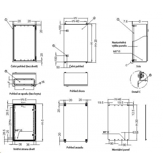 • tloušťka montážního panelu 2,5mm, válcovaná ocel