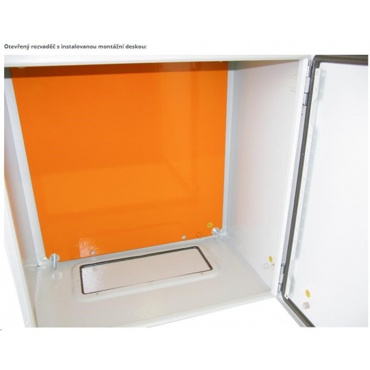 Univerzální rozvaděč, IP66, ocelový, šedý. Třívrstvá povrchová úprava (fosfátování, máčení v základním laku, práškový lak), zaměnitelné dveře, pevná konstrukce. Odnímatelný kryt kabelového průchodu. Rozvaděč je vyroben z válcované oceli o tloušťce 1,5 mm. Standardy: IEC60529, EN60529/10.91, GB4208-93 Provedení: dveře - plné, otevíratelné o 110 stupňů, montáž pravá nebo levá (uživatelsky zaměnitelné otevírání) zádní kryt - plný boční kryt - plný horní kryt - plný montážní deska: