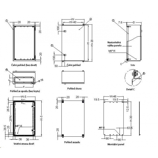 - tloušťka montážního panelu 2,5mm, válcovaná ocel