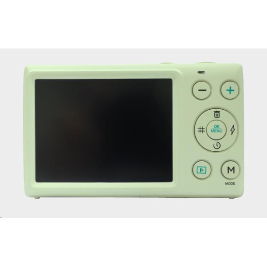 Díky své jemné mátově zelené barvě a elegantnímu designu DigiMate nejen dobře funguje, ale také vizuálně vyniká. Ať už jste majitelem fotoaparátu poprvé, nebo jen hledáte zábavného společníka na každodenní dobrodružství, tento kompaktní fotoaparát má vše, co potřebujete, v jednoduchém a stylovém balení.