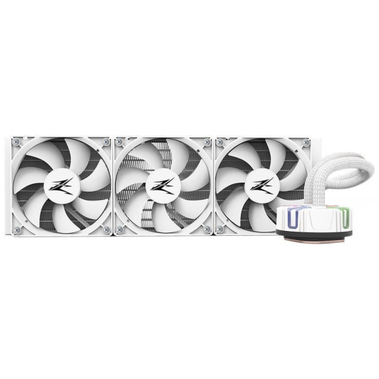 Vodní chladič určený pro chlazení široké škály procesorů. Vyznačuje se vysokou kvalitou, výkonem a spolehlivostí. Disponuje třemi 120 mm ventilátory. Odolné opletené hadice jsou dlouhé 400 mm a díky dostatečně širokému průměru zaručují plynulý průtok chladicí kapaliny. Chladič disponuje ARGB podsvícením integrovaným v chladicím bloku, díky kterému si můžete zcela přizpůsobit vzhled chladiče.