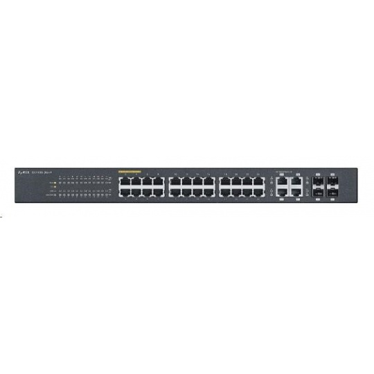 Zyxel GS1920-24HPv2 28-port Gigabit WebManaged PoE Switch, 24x gigabit RJ45, 4x gigabit RJ45/SFP, 802.3at, 375W pro PoE
